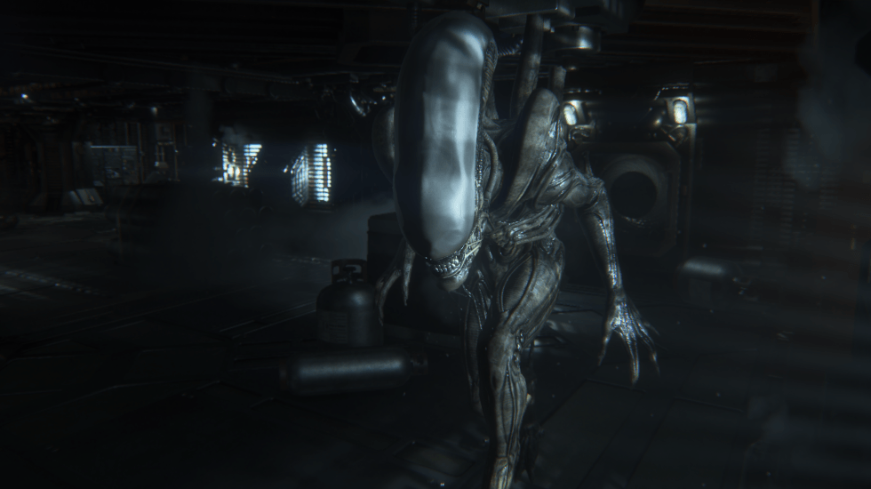 Nos controles, apesar de parecer um FPS e controlar como tal, a parte de shooter é substituída por sobrevivência. Alien Isolation é um First Person Survival Horror e Amanda não é a personagem mais ágil, forte ou esperta que você já viu. Ao contrário, ela não é uma heroína, mas apenas uma mulher comum em uma situação extraordinária. Dito isto, ela não tem habilidade com armas de fogo e recarregar as 6 balas do tambor do revólver do jogo toma uns bons 10 segundos. E isso não quer dizer muito, já que as armas de fogo não adiantam nada contra o Xenomorfo. O Alien desse game é diferente da espécie do primeiro filme, e parece um Praetorian, um soldado maior da espécie.