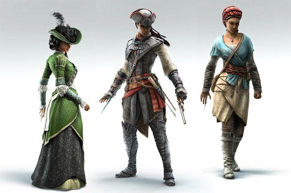 Dama – Aveline usa um longo vestido, característico da alta sociedade da época. Isso limita os movimentos de Aveline, impedindo-a de escalar, e limitando muito as opções de luta (apenas a hidden blade é usada). Porém, ela pode passear entre guardas e a alta-sociedade em missões de forma tranquila, e tem o poder de “sedução” que usa para passar por guardas que protegem lugares proibidos. Pode receber gracejos ou ser assaltada na rua.