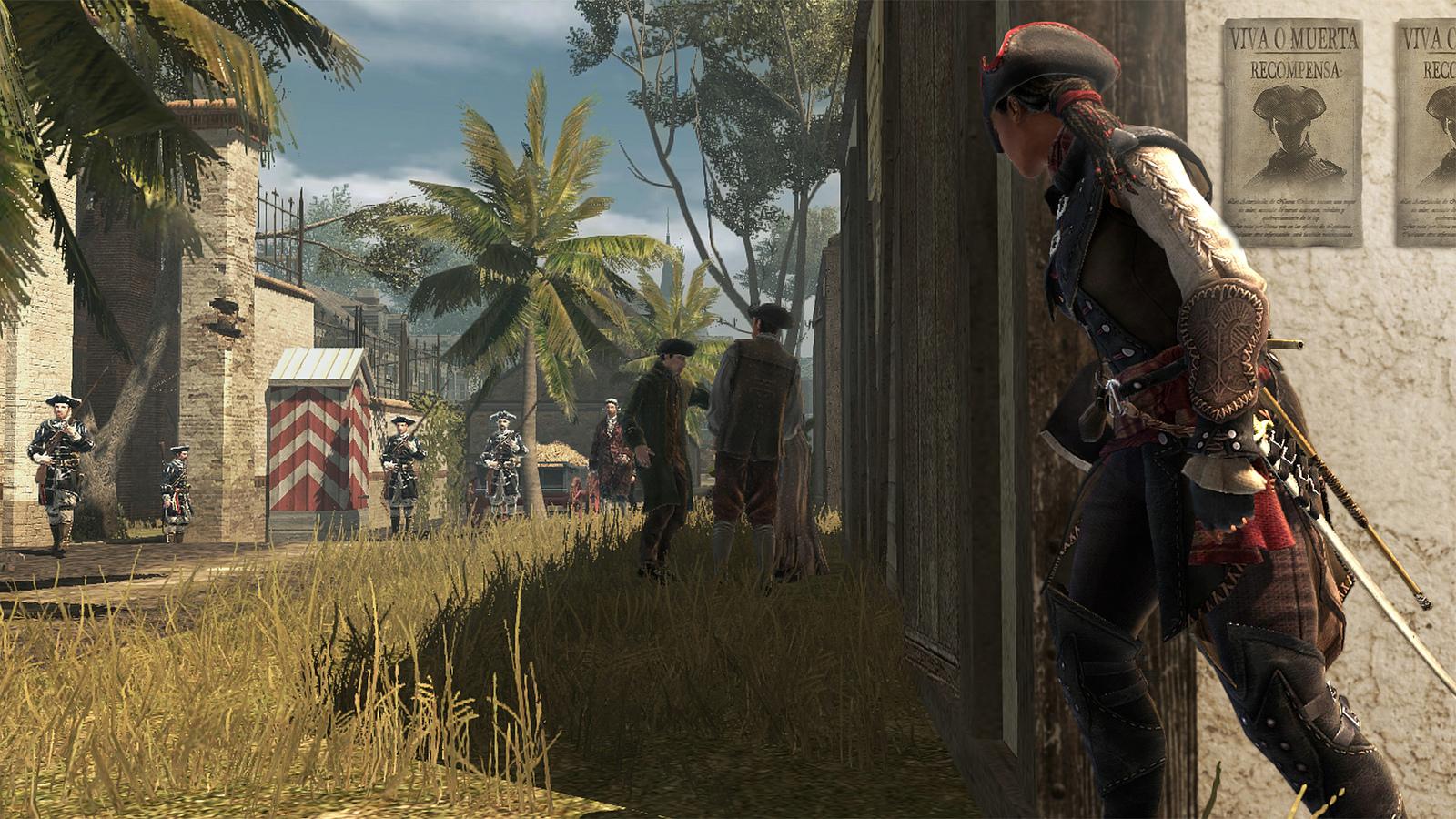 Mas essa versão de AC possui algo especial, Aveline possui uma caracteristica única nos jogos da série, DISFARCES! Claro, você pode lembrar de uma ou outra missão de Ezio ou Connor se disfarçando em algum momento, porém no caso de Liberation, esse aspecto é fundamental para a estratégia do jogo. E isso o torna único.