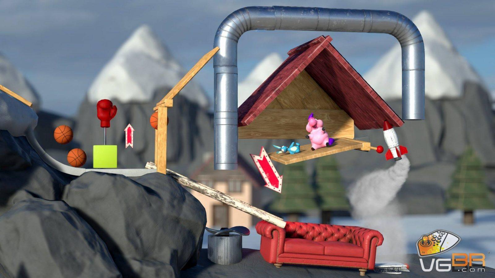 O jogo vai te entregar uma série de objetos que você tem a seu uso para posicioná-los da maneira que você preferir nesse cenário, complementando e resolvendo o desafio. Você terá aquela peça de dominó que falta para todas as outras caírem, ou terá engrenagens para auxiliar o caminho complexo ou ainda uma plataforma móvel para jogar a caixa no carro.