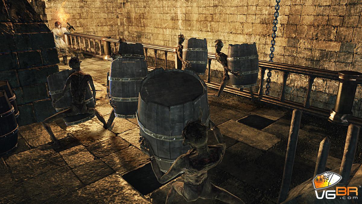 E atravessar o novo DLC será um desafio ainda maior. A linearidade aqui impõe alguma repetição em momentos de morte. E espere morrer bastante. Os inimigos comuns estão ainda mais difíceis e em Soul Level 150, com mais de 2000 de HP, morremos com apenas 3 ataques. Isso não seria problema contra apenas um oponente, mas aqui temos situações onde você terá que lutar contra 4 ou 5 inimigos ao mesmo tempo, o que vai garantir alguns momentos de desespero. Outro fator que aumenta ainda mais a dificuldade, é a inteligência artificial de alguns dos novos inimigos, que são programados para fugir de você tentando atraí-lo para armadilhas e emboscadas.