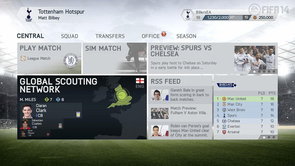 A primeira coisa que percebemos é a solução de um problema antigo do FIFA: o menu. Rápido e bastante prático, dando as últimas informações de todos os seus amigos que estão jogando e mostrando com clareza todos os modos de jogo disponíveis, colocando na primeira página o seu último modo jogado para logo começar de onde parou. Podemos ver também novos modos de jogo como ”Temporadas Co-op” onde você e seu amigo controlam um time e jogam contra outros dois jogadores em um sistema de temporadas como os outros modos online.