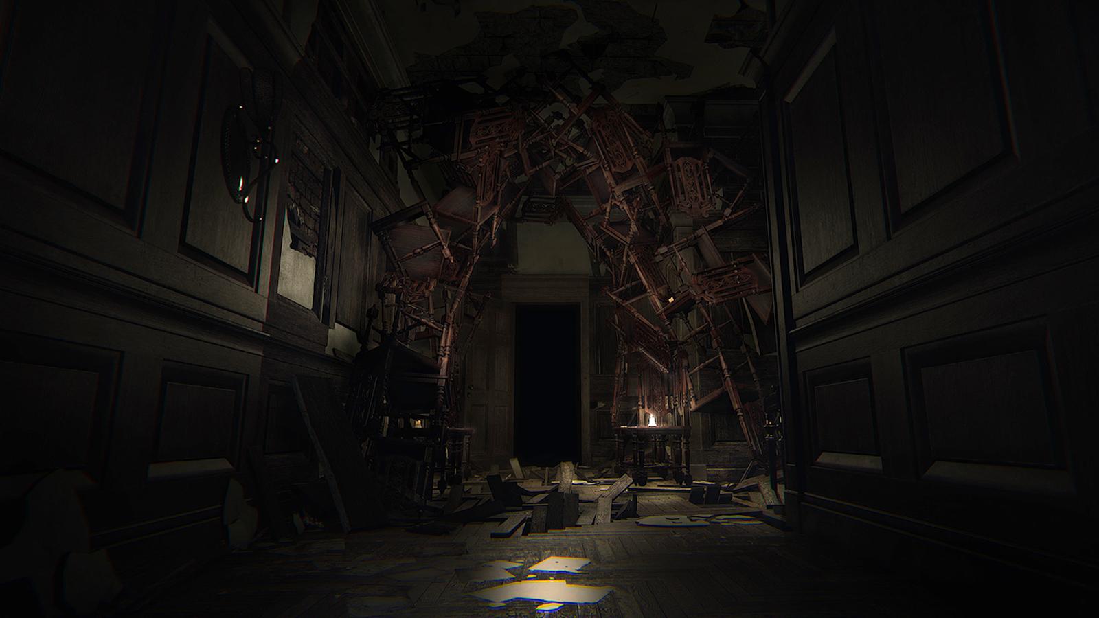 E é nessa premissa que Layers of Fear existe. O conceito inicial de P.T. toma, aqui, a forma completa. Assim como em P.T., Layers of Fear te joga em um mundo assustador e confuso, sem muita explicação, pra que você tente colocar nele algum sentido. Na pele de um pintor cuja sanidade mental se encontra em estado vividamente questionável, o jogador explora o passado através dos corredores escuros e sombrios de uma mansão. É aí, porém, que as semelhanças com P.T. terminam. O que, em P.T., era um único corredor repetido à exaustão, em Layers of Fear, é expandido além disso, pra uma mansão inteira.