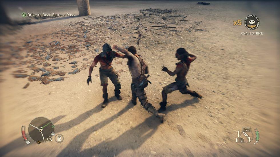 Apesar de apresentar em seu visual alguns elementos de jogo um cenário pós-apocalíptico, Mad Max falha em passar a sensação de perigo e escassez de recursos. Um exemplo é, mesmo mostrando no tutorial como conseguir gasolina e reabastecer o carro, eu nunca, durante o jogo inteiro, precisei abastecer novamente. Água e comida, que servem pra recuperar vida, não são necessárias, já que Max, ao morrer, retorna no ultimo ponto salvo com a vida completamente cheia.