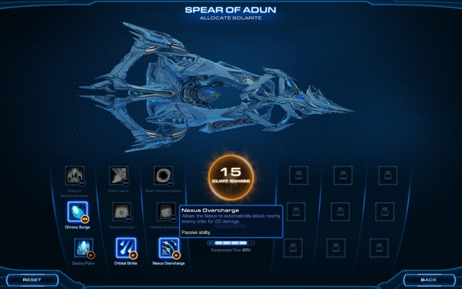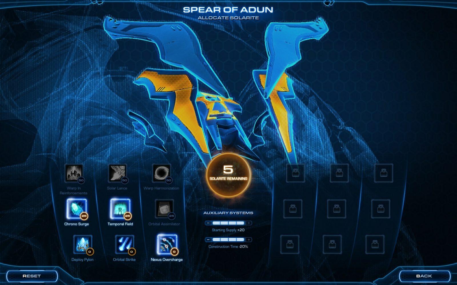 Durante as próximas 19 missões muitas coisas acontecem e dentre elas o surgimento de um personagem único na campanha. A Spear of Aiur, é a nave mãe Protoss e ela se torna uma parte importante do gameplay, garantindo habilidades únicas ao seu exército, como fazer com que você consiga desenvolver qualquer coisa com 20x da velocidade normal durante 20 segundos, um ataque orbital, congelar inimigos e outras habilidades. Claro que tudo isso vem com um preço: Solaris, um recurso especial que você obtém ao concluir os objetivos secundários.