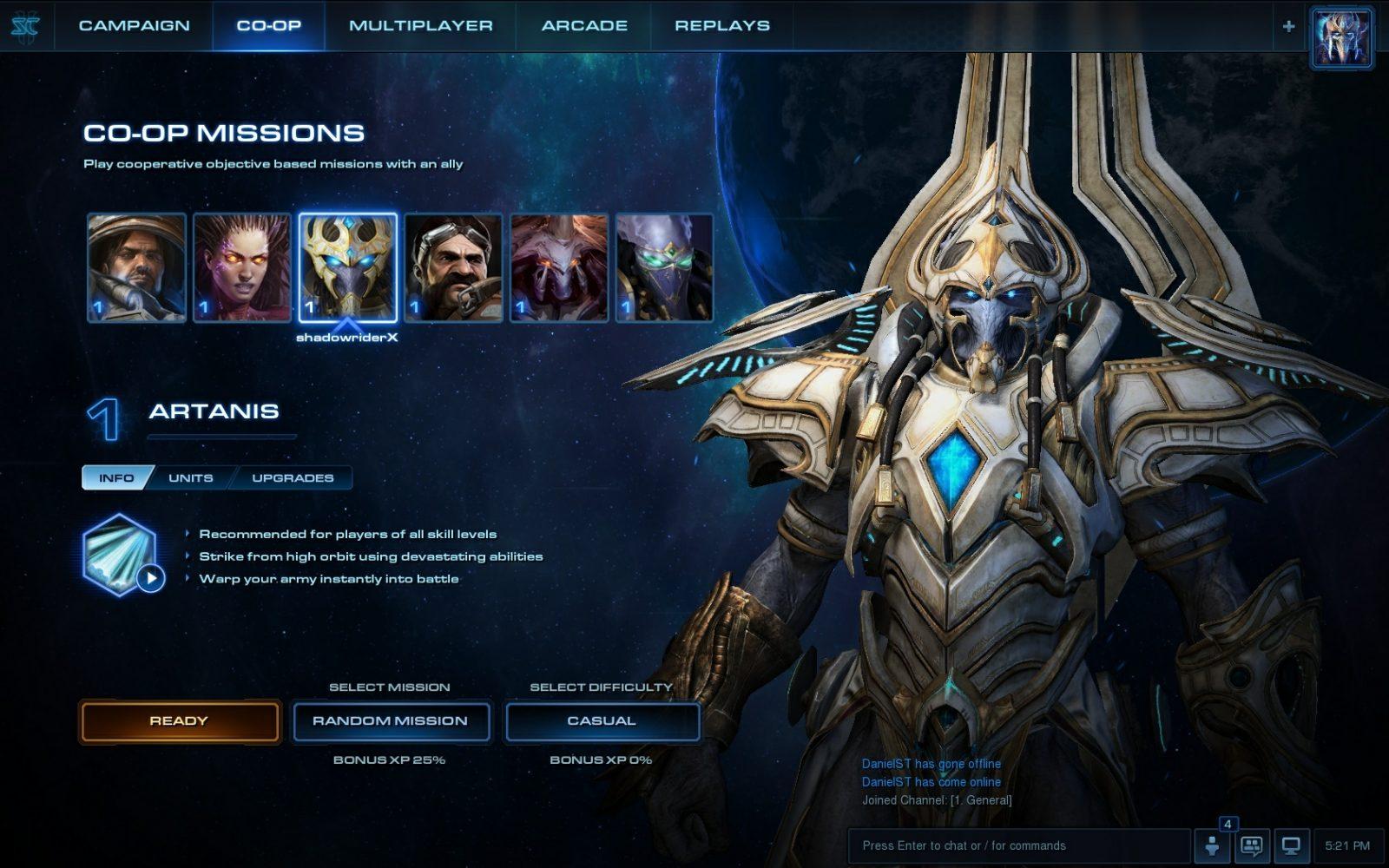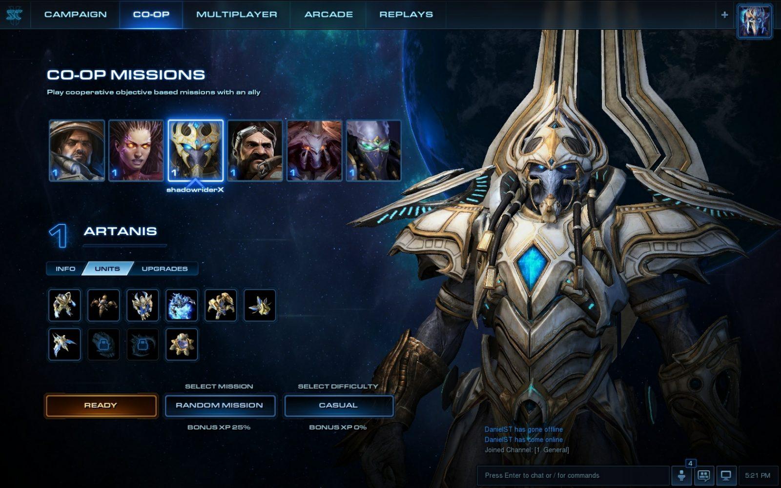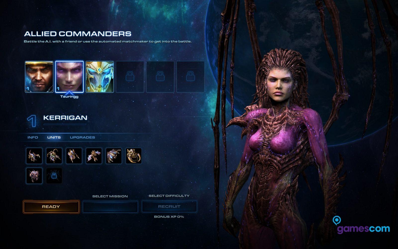 E ainda existem as missões coop, onde 2 jogadores podem escolher entre vários heróis de cada raça, cada um com unidades e habilidades especificas, e jogar mapas da campanha com missões especificas.