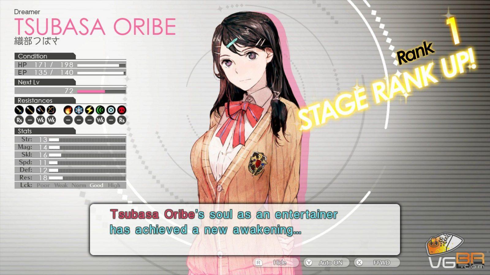 Combate e progressão: O combate mistura Fire Emblem e Persona, e a progressão do personagem também. Tanto o personagem quanto o Mirage (Persona) tem níveis. O personagem tem dois tipos de level up, um onde ganha os atributos (força, mágica, etc) e o outro onde ele evolui sua Performa, que seria sua sua habilidade como artista, e ao evoluir sua Performa você poderá ganhar um Skill especiais para cada personagem.