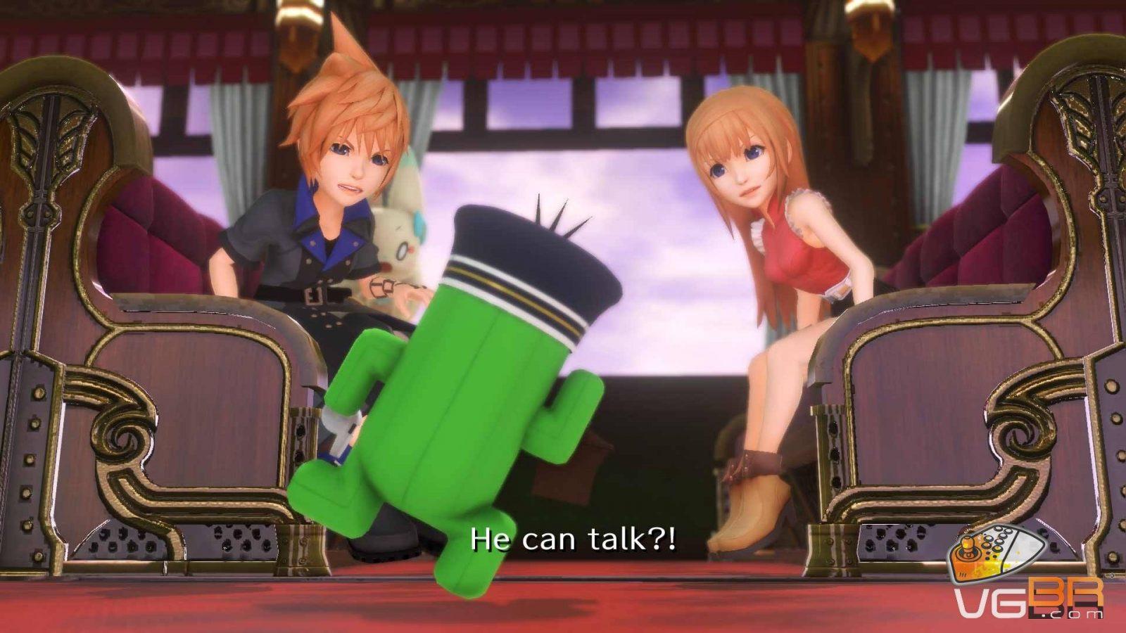 Fugindo um pouco das músicas e indo para a dublagem, aqui vemos um trabalho bem bacana e grande parte dos dubladores dos jogos originais retornam (sendo grande parte já conhecido para quem jogou Dissidia: Final Fantasy). As vozes em inglês ficaram boas só que aqueles que tem um pouco menos de tolerância para coisas fofas, vão querer imediatamente colocar as vozes no mudo. Assim que Tama começar a falar, é bem irritante.