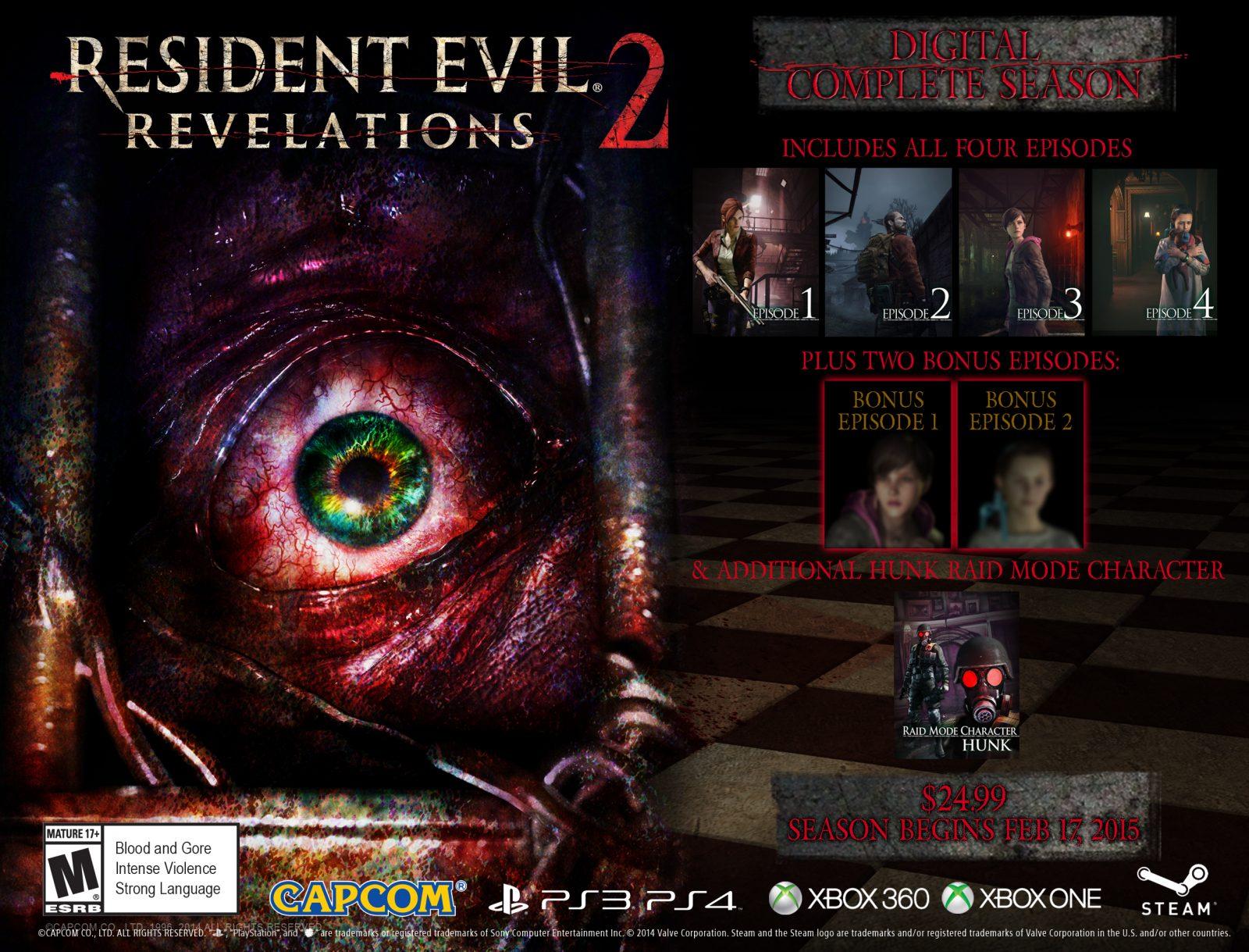 Resident Evil Revelations 2 terá menus e legendas em português brasileiro e será lançado em formato episódico, com novos episódios disponibilizados semanalmente em formato digital pelo preço previsto de R$ 12,00 (via Xbox Live para Xbox One e Xbox 360) / R$ 12,99 (via Steam para PC e via PlayStation Store para PS4 e PS3) por episódio. Se liga no calendário a seguir 🙂