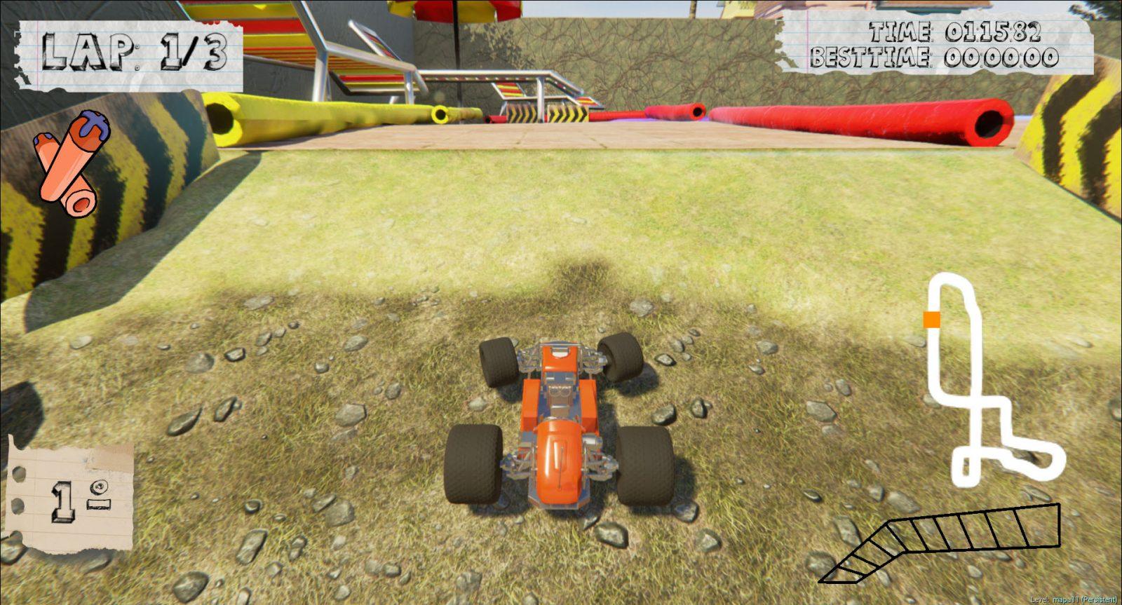 Jogo de corrida multiplayer para até 4 jogadores que se passa em um quintal, onde uma criança cria uma pista para seus carrinhos de controle remoto. Desenvolvido por uma equipe de 6 pessoas da Unidade Santo Amaro da SAGA, para o Desafio de 30 dias.