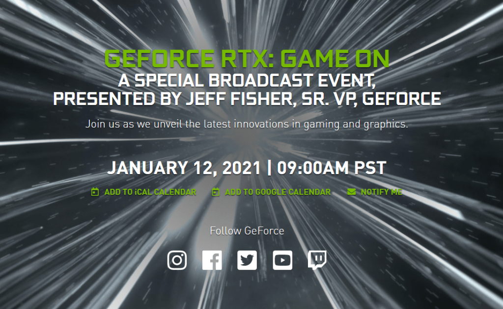 Será um evento especial no dia 12 de janeiro às 14h (horário de Brasília), com uma apresentação por Jeff Fisher, vice-presidente sênior da GeForce.