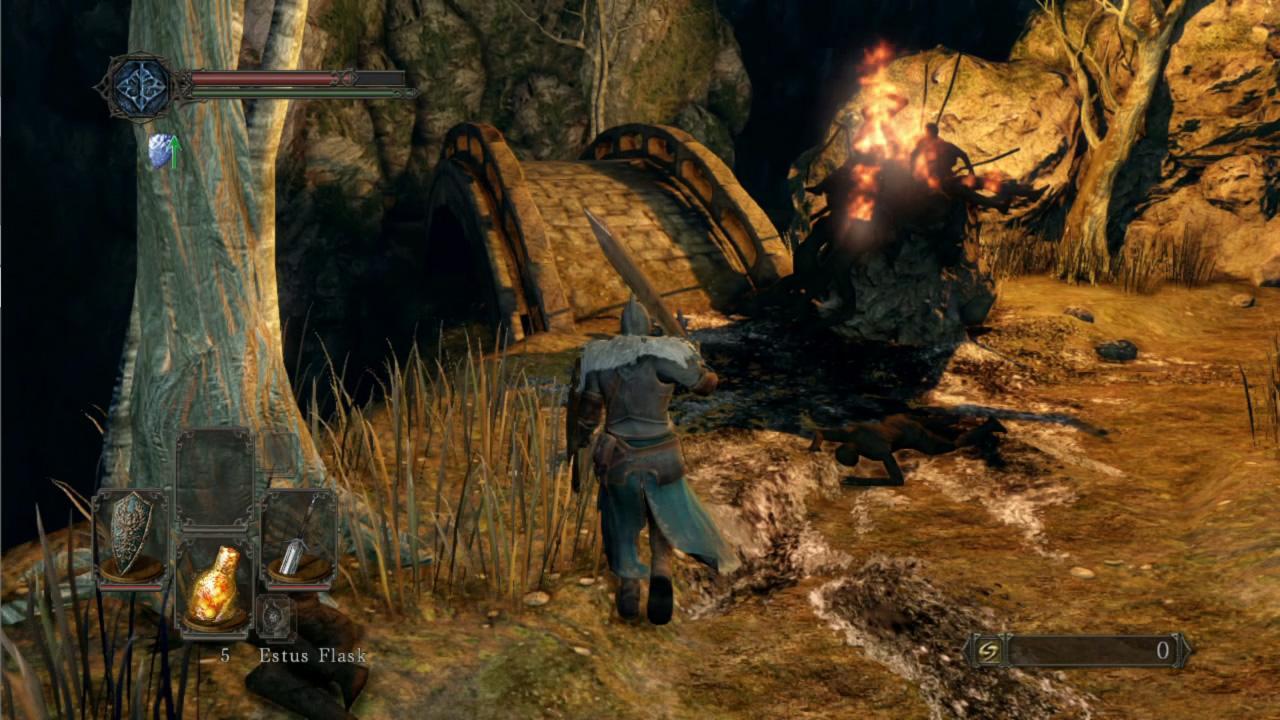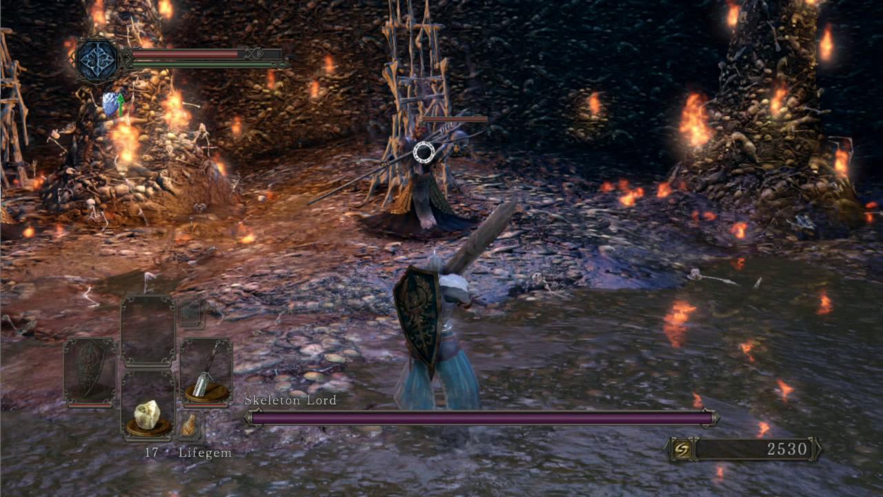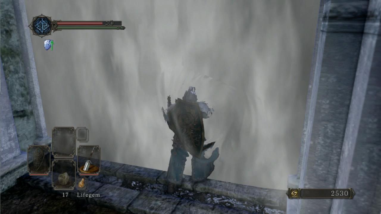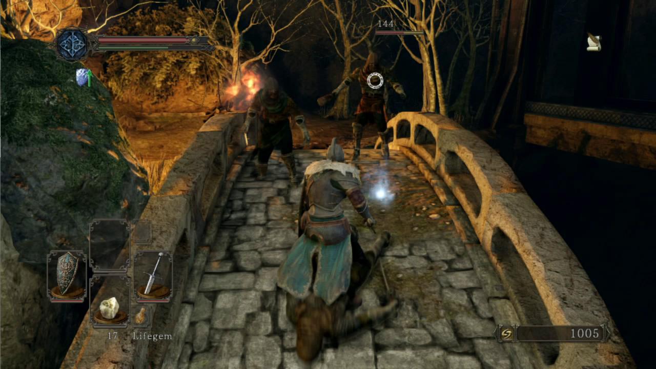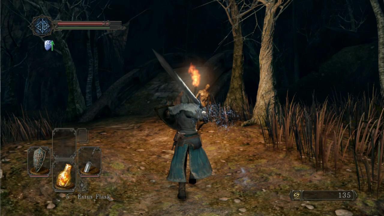 A primeira impressão, e a mais marcante, é de como o jogo mudou de uma forma geral. O ritmo é diferente. É algo um tanto difícil de explicar, uma vez que isso se deve à um conjunto de fatores tais como animação, velocidade, detecção de colisão e AI dos inimigos. A sensação do combate em si me parece mais próximo de Demon’s Souls do que do próprio Dark Souls. O sistema de cura também mudou bastante. Além da inclusão das lifegems, que são itens consumíveis, o processo de cura é muito mais lento, podendo ser interrompido por um golpe do inimigo. Os backstabs, como já visto nos vídeos promocionais, tem novas animações, e está um pouco mais difícil de “pescar” backstabs, uma vez que os inimigos estão mais agressivos e atacam com mais sequências de golpes e mais rapidamente. Quanto aos parries e ripostes, estes foram completamente alterados. A animação do parry tem um pequeno atraso, fazendo com que você precise prever o próximo movimento do adversário, e uma vez conectado, faz com que o mesmo caia no chão, ficando assim exposto ao riposte.