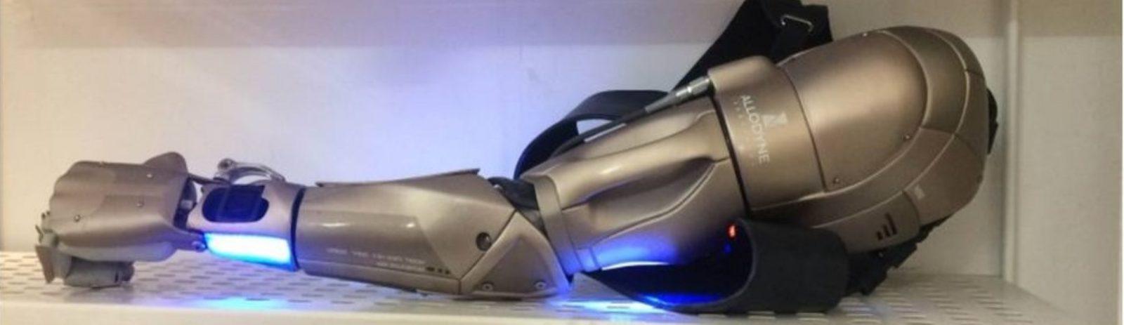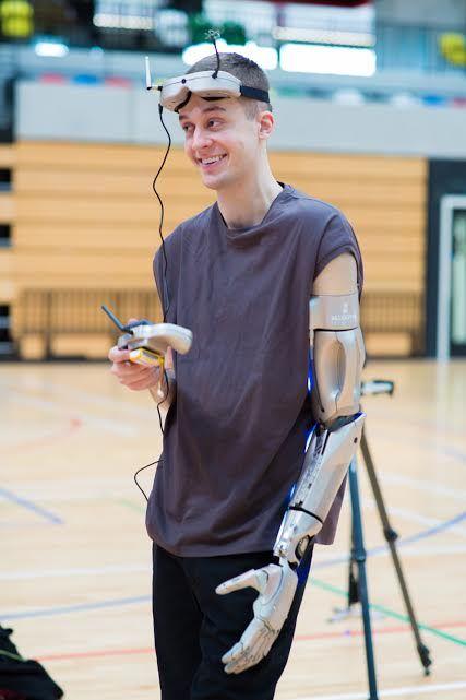 Projetado e desenvolvido por uma empresa chamada Open Bionics, a prótese possui uma lanterna, uma luz laser, uma porta USB embutida no pulso para carregar um smartphone, um relógio digital, e o melhor de tudo: um drone.