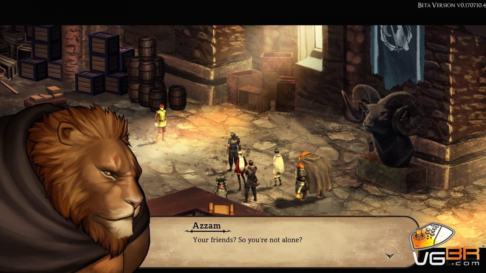 A história começa cativante de uma forma clássica. Finn é um escravo sem memórias que vence de maneira épica o maior guerreiro no coliseu, porém poupa a vida de seu inimigo chamando assim a atenção de Geddo. Geddo e Finn começam sua jornada na travessia de um deserto escaldante onde encontrarão desafios e aliados. Sem muitos spoilers do enredo mas falando da ambientação que foi algo que chamou muito minha atenção de cara foi a caracterização das cidades, Finn começa sendo escravo em uma cidade do reino Legrand que é comandada por leões humanoides. Toda a cultura e forma de falar própria desse povo leão é encantador. Eu que sou fissurado em RPG (principalmente de mesa) dou muito valor a esse tipo de ambientação e cuidado e toda cidade tem sua estrutura e arquitetura própria, representando o povo com uma linguagem própria e vestimentas específicas. Legrand Legacy começa e termina como um clássico RPG, e os clichês estão ali. Temos o herói sem memória e um poder escondido, o velho mago misterioso e a menina bondosa da magia de cura. Mas todos estão bem representados com suas particularidades e interesses próprios.