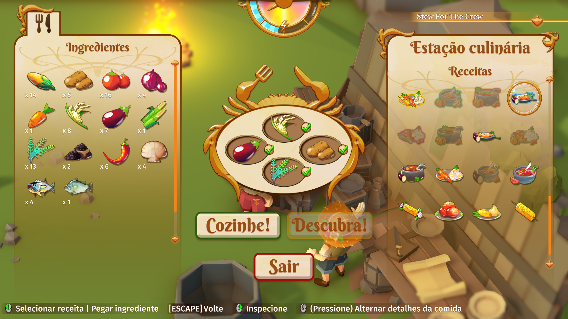 Ainda falando das tarefas secundárias, você possui várias opções do que fazer, como cozinhar, pescar e plantar. Durante sua exploração, você irá encontrando alimentos, especiarias e temperos, assim podendo cozinhar diferentes tipos de comidas. Pescar também tem sua importância, pois com os peixes que você coleta, você poderá fazer ainda mais pratos diferenciados. Já plantar é o que não deixará você sem comida, isso se você administrar bem seus recursos, é claro.