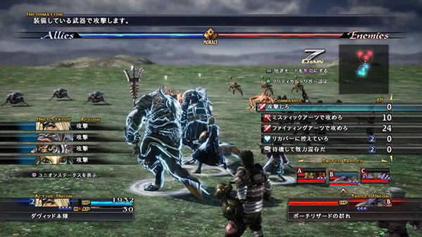 A batalha em The Last Remnant Remastered envolve turnos. Você pode ter até 77 unidades (aliados e inimigos) na tela de batalha de uma só vez. Só de pensar nisso pode parecer um pouco demais. Em vez de controlar uma unidade por vez selecionando comandos específicos, você pode colocar até 5 unidades em uma União (grupo), combinando seu HP e AP em uma barra de vida compartilhada, se a HP for para 0, todas elas morrem. É possível que unidades únicas sejam atacadas demais ou amaldiçoadas.