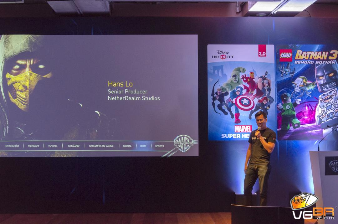 Hans Lo, produtor da NetherRealm Studios apresentou Mortal Kombat X, mostrando os novos personagens Kano e Raiden, e as novidades no sistema do jogo, bem como confirmou a localização do game para o português no Brasil.